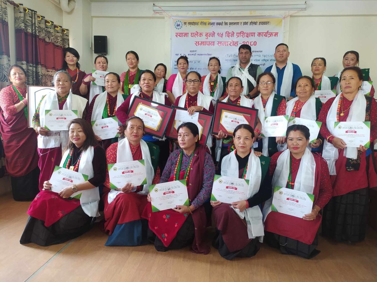 काठमाडौं । तमुस्यो ह्युल छोंज धीं गुरुङ महिला रास्ट्रिय परिषदले आयोजना गरेको स्यामा घलेक बुन्ने १५ दिने तालिम आज सकिएको छ ।