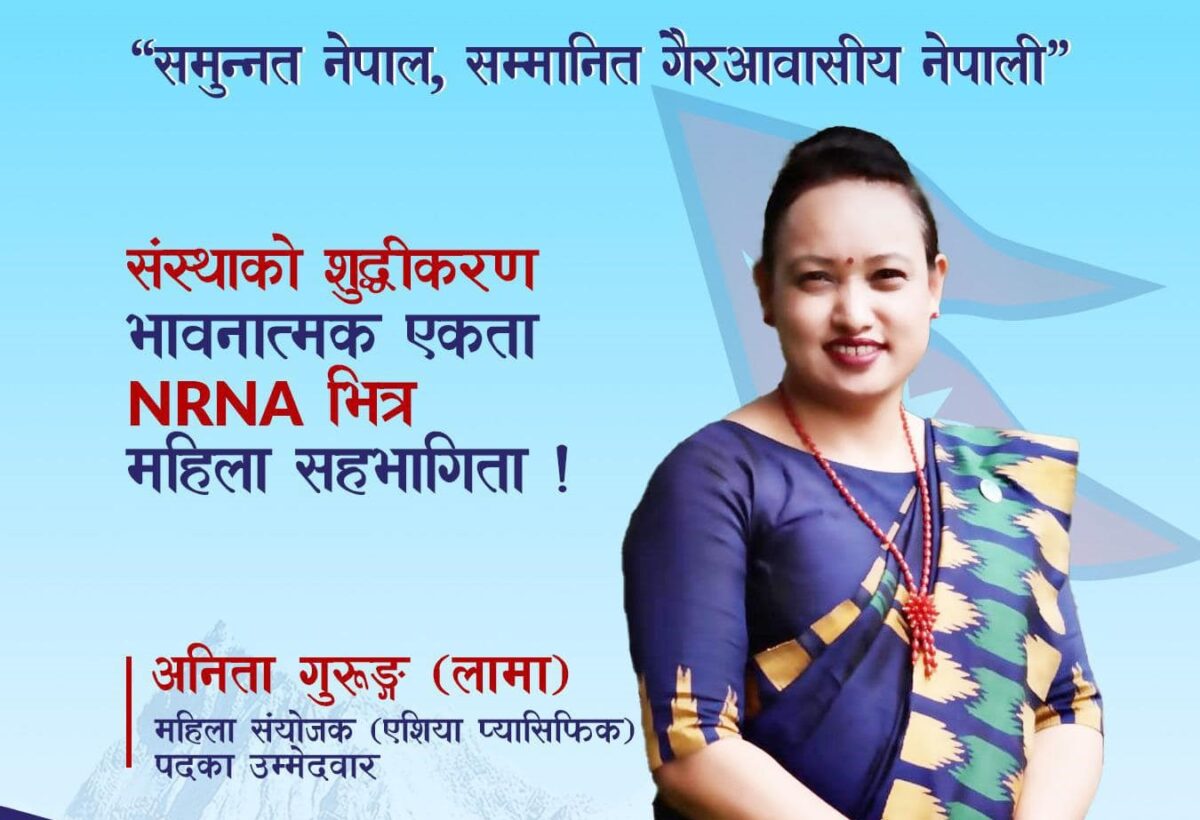 जापान । गैरआवासीय नेपाली संघ (एनआरएनए) एसिया प्यासिफिक महिला संयोजकमा अनिता गुरुङले उम्मेदवारी घोषणा गर्दै पाँच बुँदे एजेण्डा अघि सारेका छन् ।