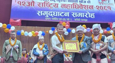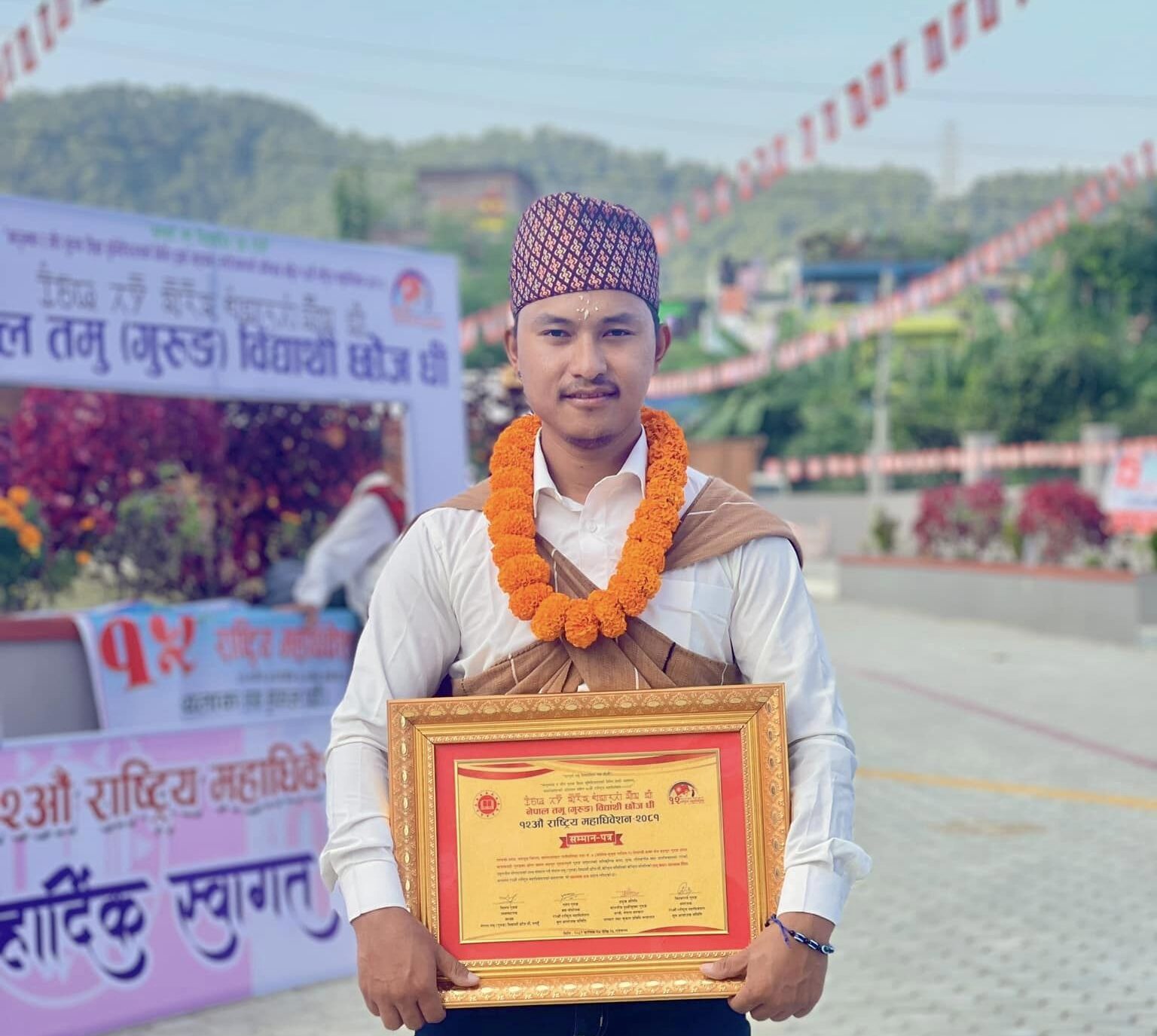 लमजुङ । तमू कलाकार कमलबहादुर गुरुङलाई तमू विद्यार्थी छोंज धीं केन्द्रीय समितिले सम्मान गरेको छ। तमू विद्यार्थी छोंज धीं केन्द्रीय समितिको १२औं महाधिवेशनको क्रममा कमलबहादुरलाई तनहुँको दमौलीमा सञ्चार तथा सूचना प्रविधिमन्त्री पृथ्वीसुब्बा गुरुङमार्फत सम्मान गरिएको हो।