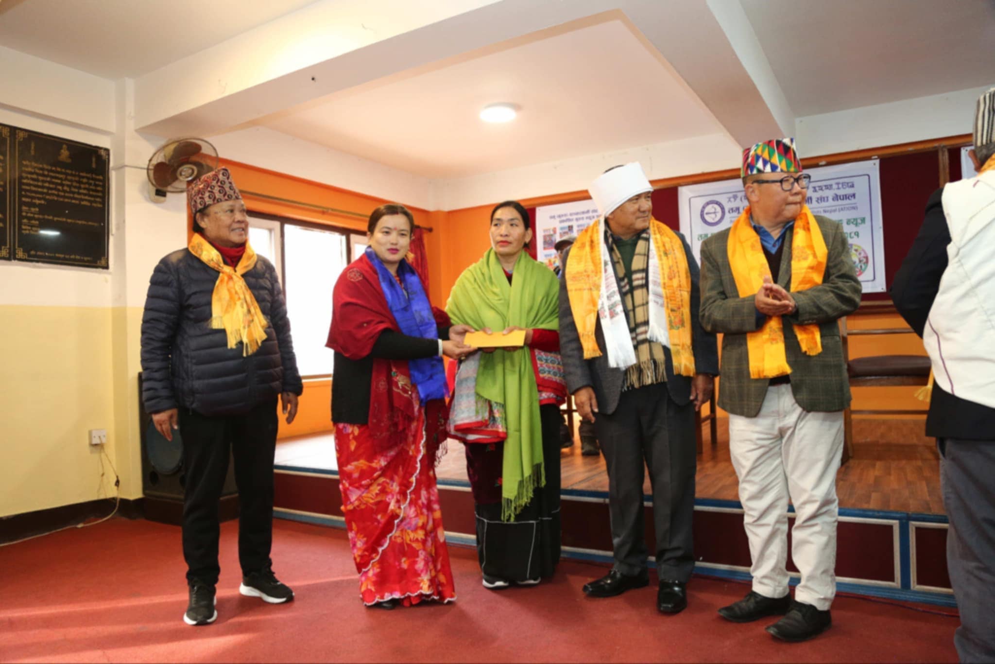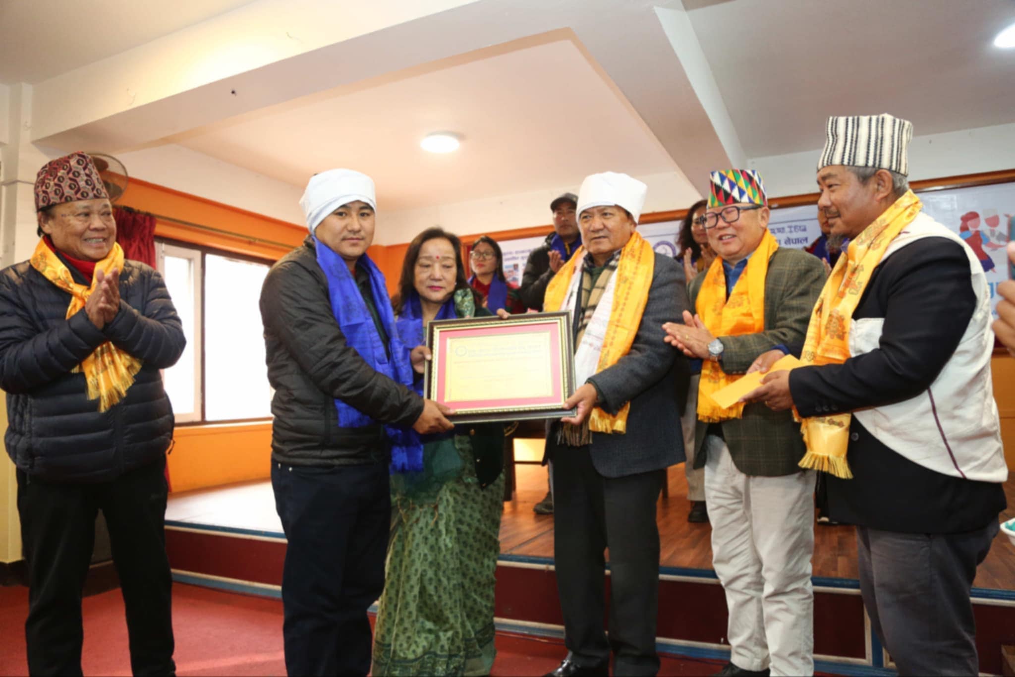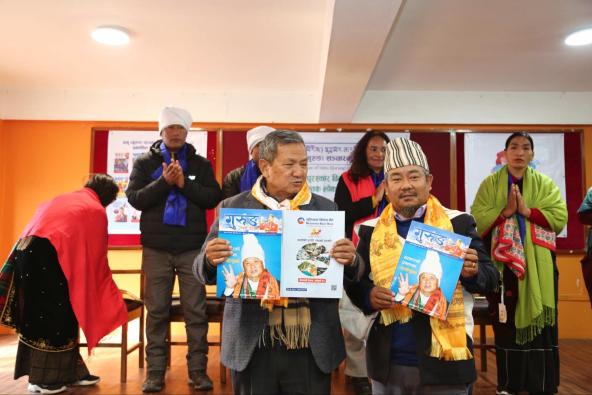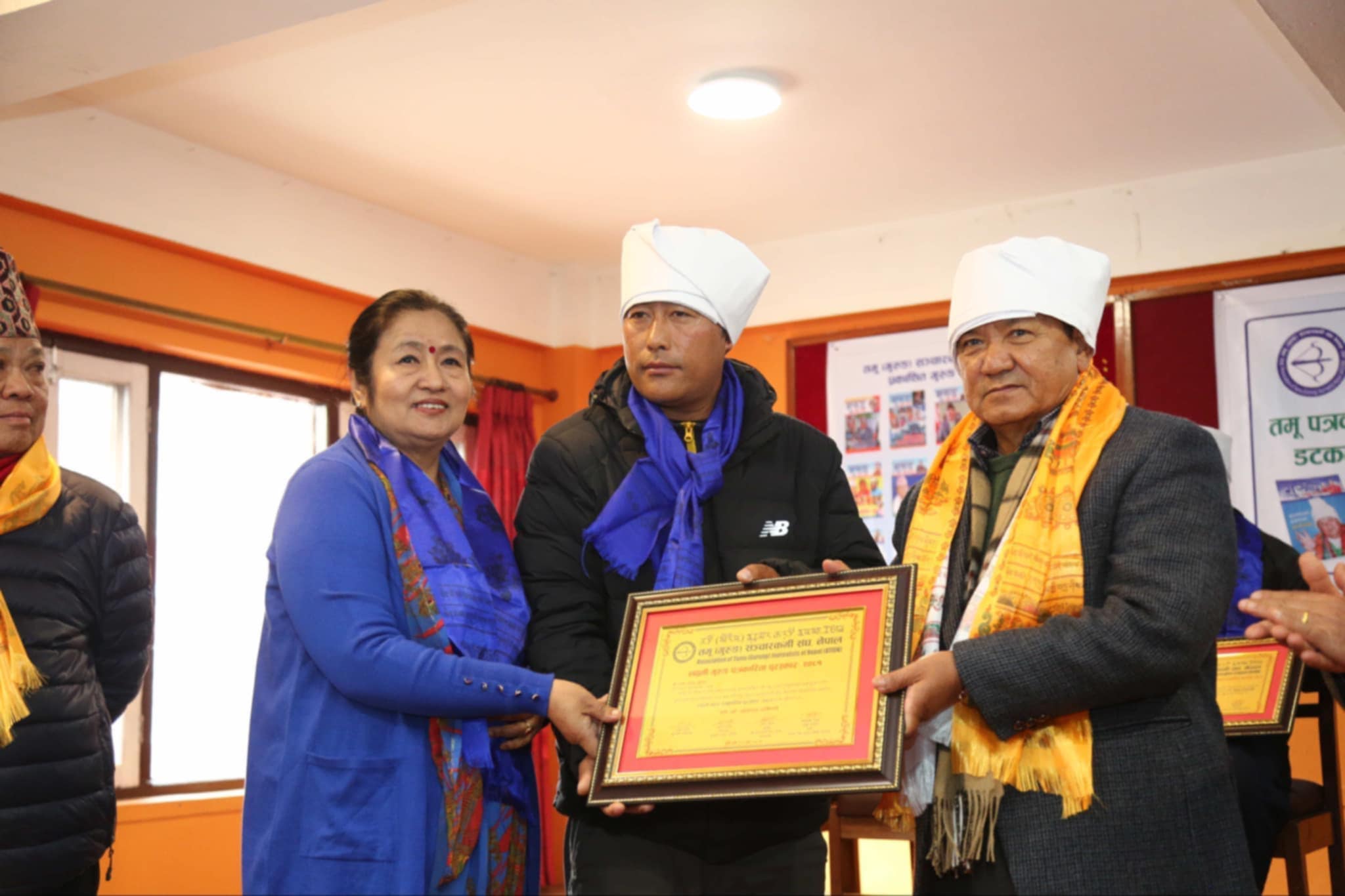 बुधबार नेपाल सरकारका प्रवक्ता एवम् सूचना सञ्चार तथा प्रविधिमन्त्री पृथ्वीसुब्बा गुरूङमार्फत गुरूङ जातिको पहिचानसहि फेटा लगाएर नगद र सम्मानपत्रसहित पुरस्कृत गरिएको आयोजक संस्था तमू (गुरूङ) सञ्चारकर्मी संघ नेपाल केन्द्रीय समितिका अध्यक्ष लाला गुरूङले जानकारी दिनुभयो।