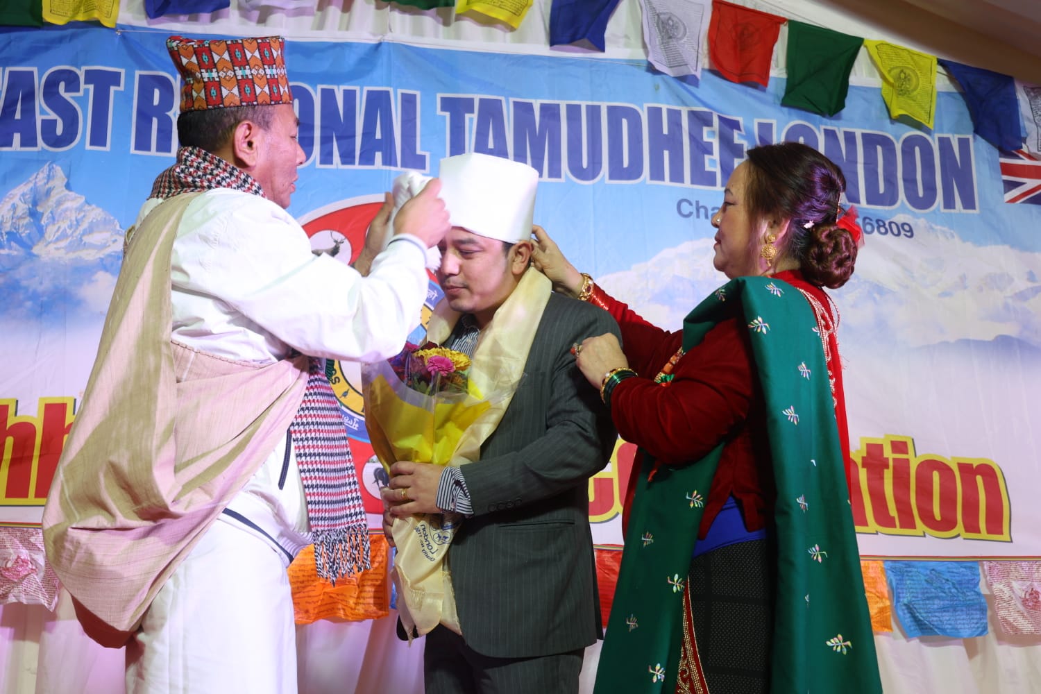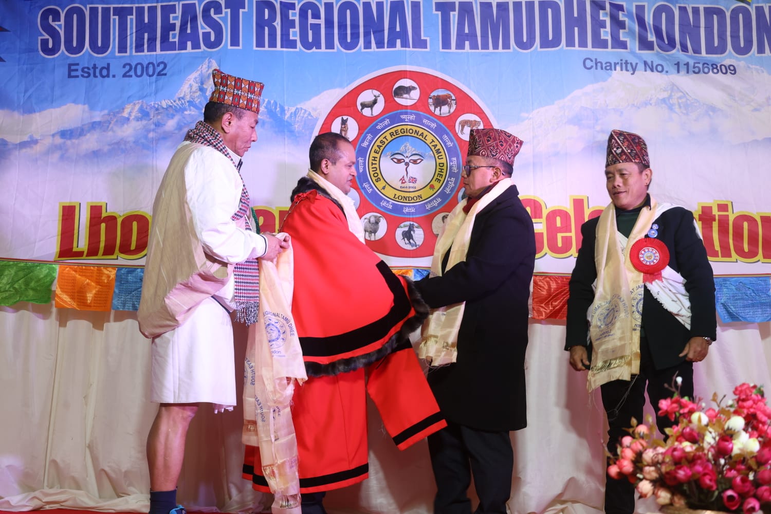 लण्डन । साउथ इष्ट रिजनल तमू धीँ लण्डनले तमू (गुरूङ) सञ्चारकर्मी संघ नेपालका केन्द्रीय अध्यक्ष लाला गुरूङसहित विभिन्न व्यक्तिहरुलाई सम्मान गरेको छ। २९ डिसेम्बरका दिन तमू ल्होसार/ल्होछार पर्व मनाउने क्रममा नेपालबाट आएका सञ्चारकर्मीका अध्यक्ष गुरूङसहित तमू धीँ नेपालका अध्यक्ष हुम गुरूङ, तमू धीँ युकेका अध्यक्ष जुमकाजी गुरूङ, तमू समाज युकेका अध्यक्ष विन्दु गुरूङ घले र मेजर डा सुदर्शन गुरूङलाई सम्मान गरेको हो।