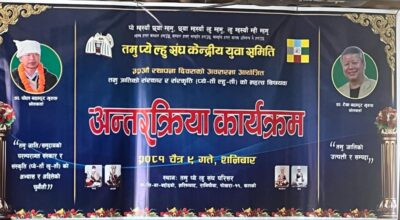 पोखरा । तमू प्ये ल्हु संघ केन्द्रिय युवा समितिले ३२औं स्थापना दिवसको अवसरमा तमू समुदायको उत्पत्ति र सम्पदा, परम्परागत, संस्कृति, अभ्यास र अहिलेको चुनौति विषयमा अन्तरक्रिया कार्यक्रम सम्पन्न भएको छ ।