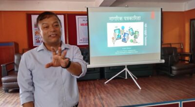 अग्रज पत्रकार खिम घलेले अहिले सूचना प्रविधिको क्षेत्रमा भएको विकासले प्रत्येक नागरिकलाई पत्रकार बन्न सम्भव बनाएको बताउनु भयो । ‘अहिले प्रत्येक व्यक्तिको हातमा मोबाइल छ’, उहाँले भन्नुभयो, ‘त्यो मोबाइल नै नागरिक पत्रकारको ब्रह्मास्त्र हो ।’ अहिले प्रत्येक व्यक्तिले आफ्नो मोबाइलबाट फोटो, भिडियो आदि खिचेर समाचारमुलक सूचना तत्काल सोसल मिडियामा पोष्ट गर्न सक्छन् । ‘नागरिक पत्रकार बन्न समाचारका विषयवस्तु छनौट र समाचार हुन चाहिने तत्वबारे ज्ञान चाहिँ हुन आवश्यक छ,’ घलेले भन्नुभयो, ‘त्यो ज्ञान भएन भने चाहिँ सूचना अधुरो अपुरो आउँछ ।’