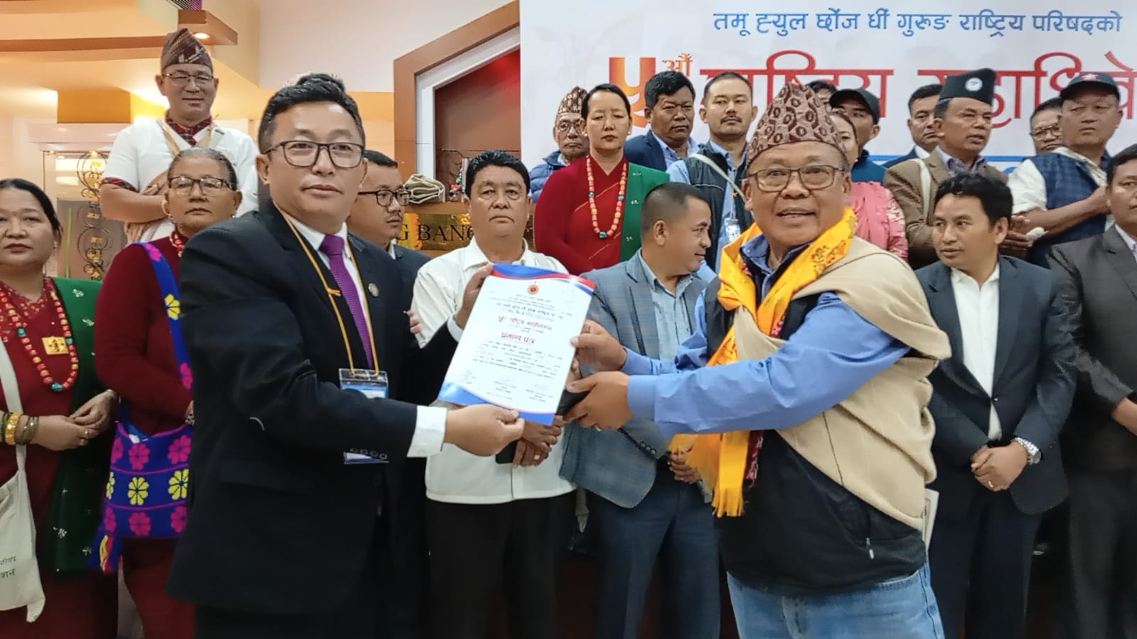 काठमाडौं,१३ जेठ : तमु ह्युल छोंज धीं गुरुङ राष्ट्रिय परिषदको अध्यक्षमा धनमान गुरुङ निर्वाचित हुनुभएको छ । प्रतिस्पर्धी रन बहादुर गुरङलाई पराजित गर्दै उहाँ अध्यक्षम निर्वाचित हुनुभएको हो । अध्यक्ष पदमा धनमान गुरुङ २४५ मत प्राप्त गरी विजयी हुनुभयो । उहाँका प्रतिस्पर्धी रनबहादुर (आर. बी. गुरुङले १३८ मत प्राप्त गर्नुभयो।