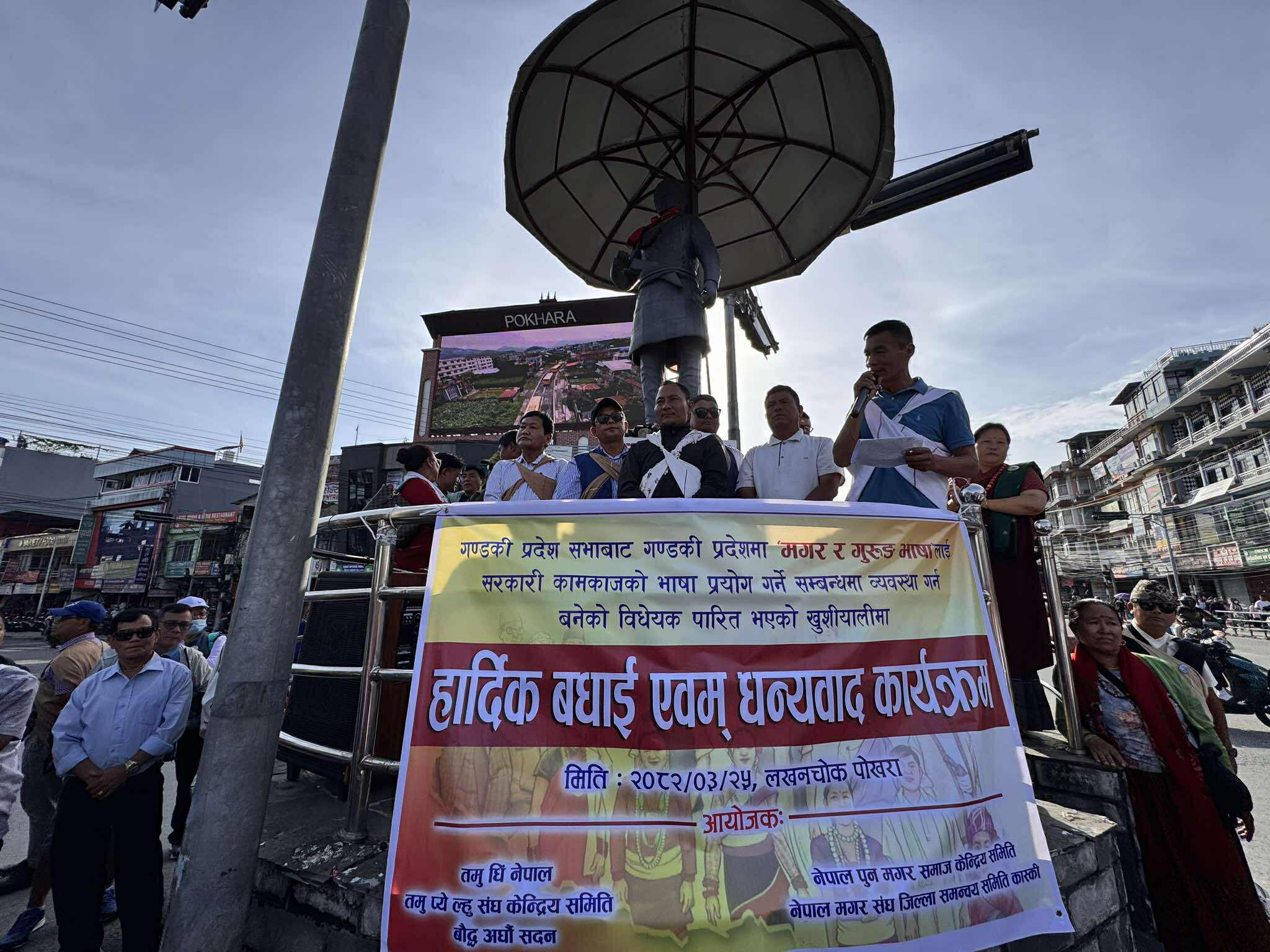 पोखरा । गण्डकी प्रदेशमा गुरुङ र मगर भाषालाई सरकारी कामकाजी भाषाको रूपमा प्रयोग सकिने गरी बनेको विधेयक पारित भएपछि प्रदेशभर खुसीयाली मनाएको छ। प्रदेशसभाको मंगलबार बसेको बैठकले उक्त विधेयक पारित गरेपछि गण्डकीमा गुरुङ र मगर भाषाले सरकारी कामकाजमा मान्यता पाएका छन्।