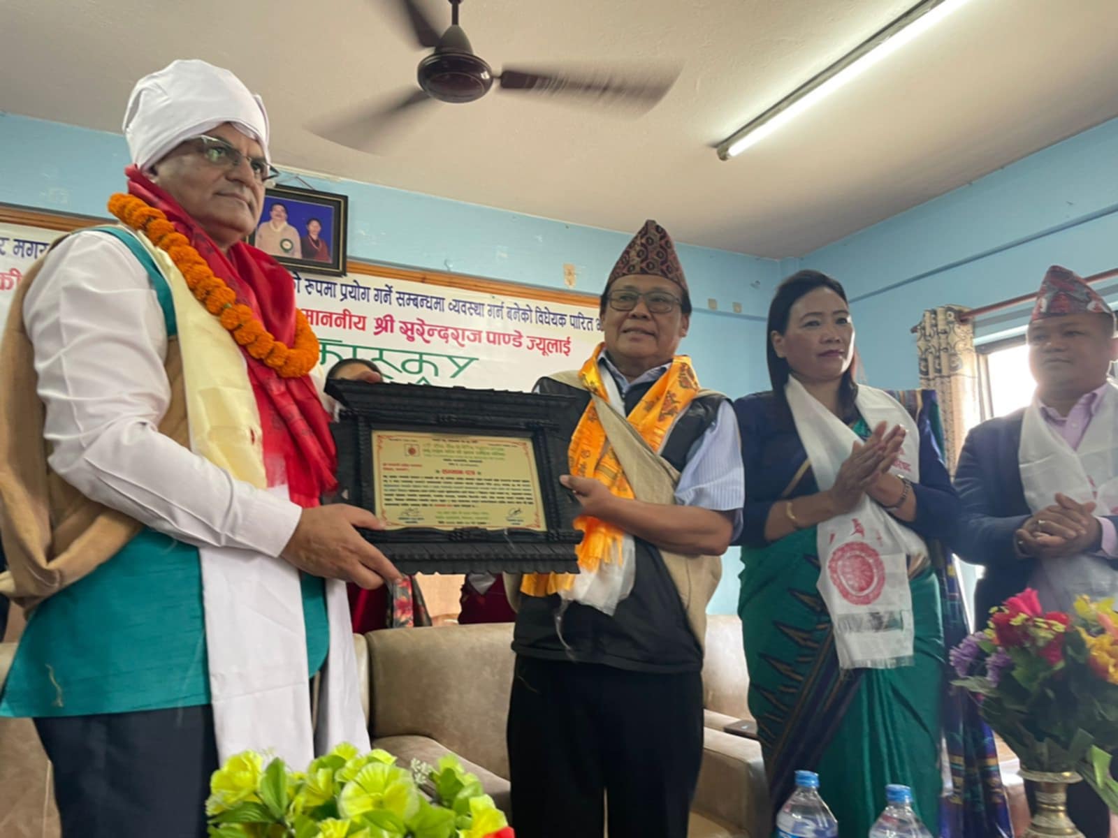 काठमाडौँ । तमू ह्युल छोँज धीँ गुरूङ राष्ट्रिय परिषद केन्द्रीय समितिले गण्डकी प्रदेशका मुख्यमन्त्री सुरेन्द्रराज पाण्डेलाई सम्मान गरेको छ। गण्डकी प्रदेशले तमु अर्थात् गुरूङ भाषालाई सरकारी कामकाजको भाषाको रूपमा मान्यता दिएपछि गुरूङ समुदायले गोंगबुस्थित ह्युल छोँज धीँको कार्यालयमा कार्यक्रम आयोजना गरेर मुख्यमन्त्री पाण्डे र गण्डकी प्रदेशलाई सम्मापत्रद्वारा सम्मान गरिएको हो।