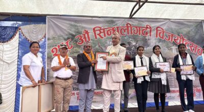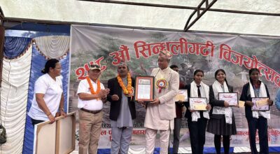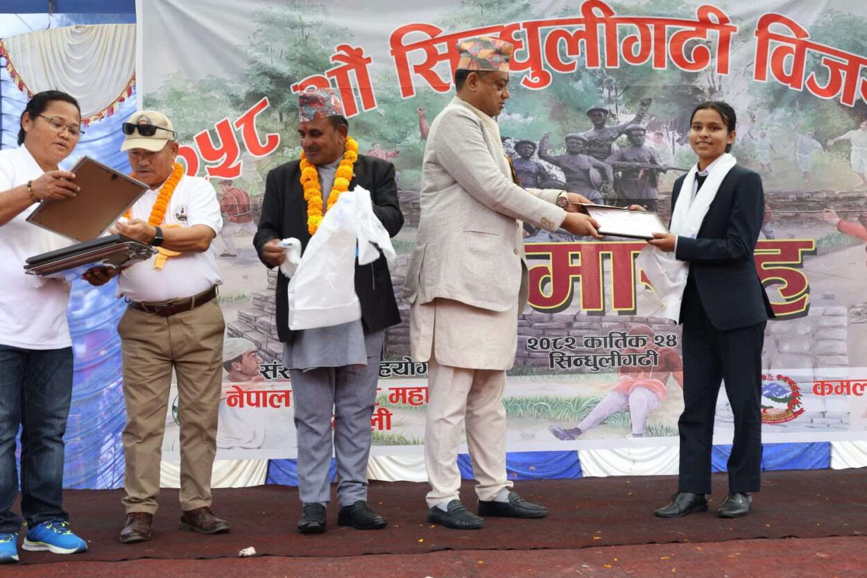पुरस्कृत छात्रछात्राहरुलाई सिन्धुलीगढी विजयोत्सवको अवसरमा सोमबार आयोजित समारोहमा प्रमुख अतिथि बागमती प्रदेशका मुख्यमन्त्री इन्द्रबहादुर बानियाले हस्तान्तरण गरे ।