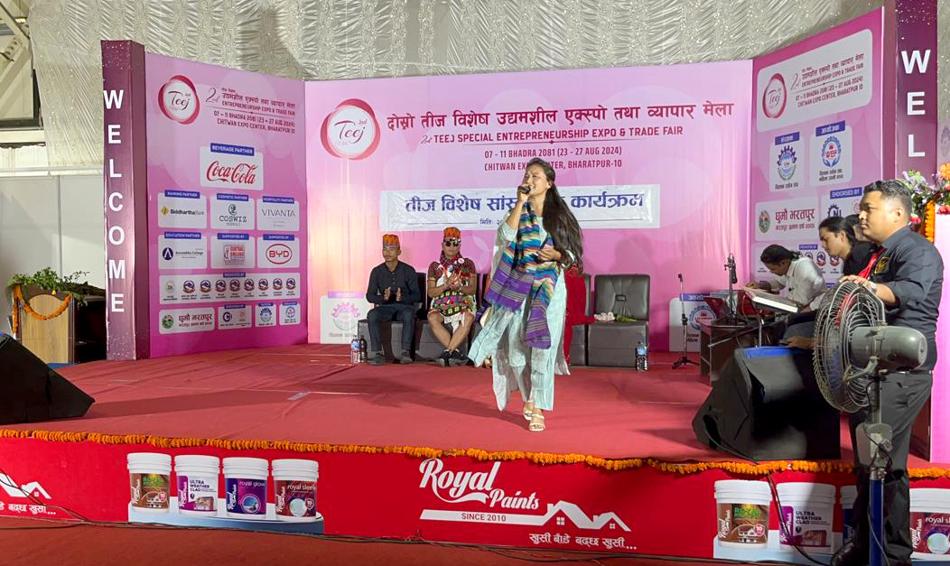 चितवन । नेपाली महिलाहरूको महान् पर्व तीज नजिकै आइपुग्यो । यही पर्वलाई लक्षित गर्दै चितवन उद्योग संघ महिला उद्यमी मञ्चले दोस्रो तीज विशेष मेला आयोजना गरेको छ। उक्त कार्यक्रममा विभिन्न कलाकारहरूमार्फत तीजको भाका गाउने र नाच्ने गरिरहेका छन् । यही क्रममा आइतबार चितवनकी चेली एवम् तमू सञ्चारकर्मी सूचना गुरूङले पनि उपस्थित दर्शकलाई छमछमी नचाइन्। उनले…