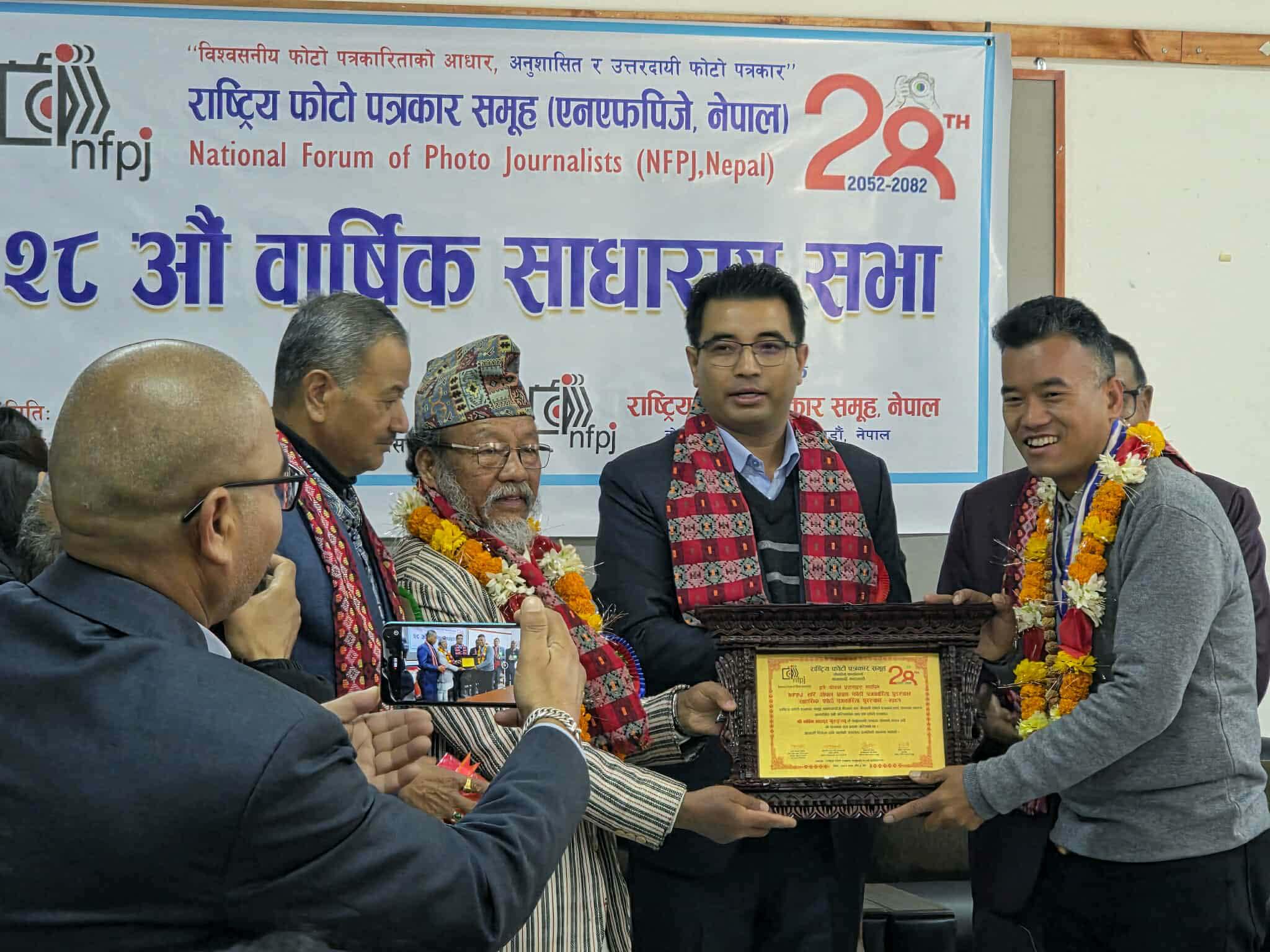 काठमाण्डौ । लामो समय देखि फोटो पत्रकारितामा क्रियासिल फोटो पत्रकार नबिनबाबु गुरुङ सम्मानित भएको छ । राष्ट्रिय फोटो पत्रकार समूह (एनएफपिजे)को २८ औं वार्षिक साधारण सभामा आइतबार पत्रकार गुरुङ सम्मानित भएको हो । फोटो पत्रकारितामा लामो समय देखि क्रियासिल गुरुङ विभिन्न सञ्चारमाध्यम हुदै हाल सेतोपाटी अनलाईनमा कार्यरत छन् ।