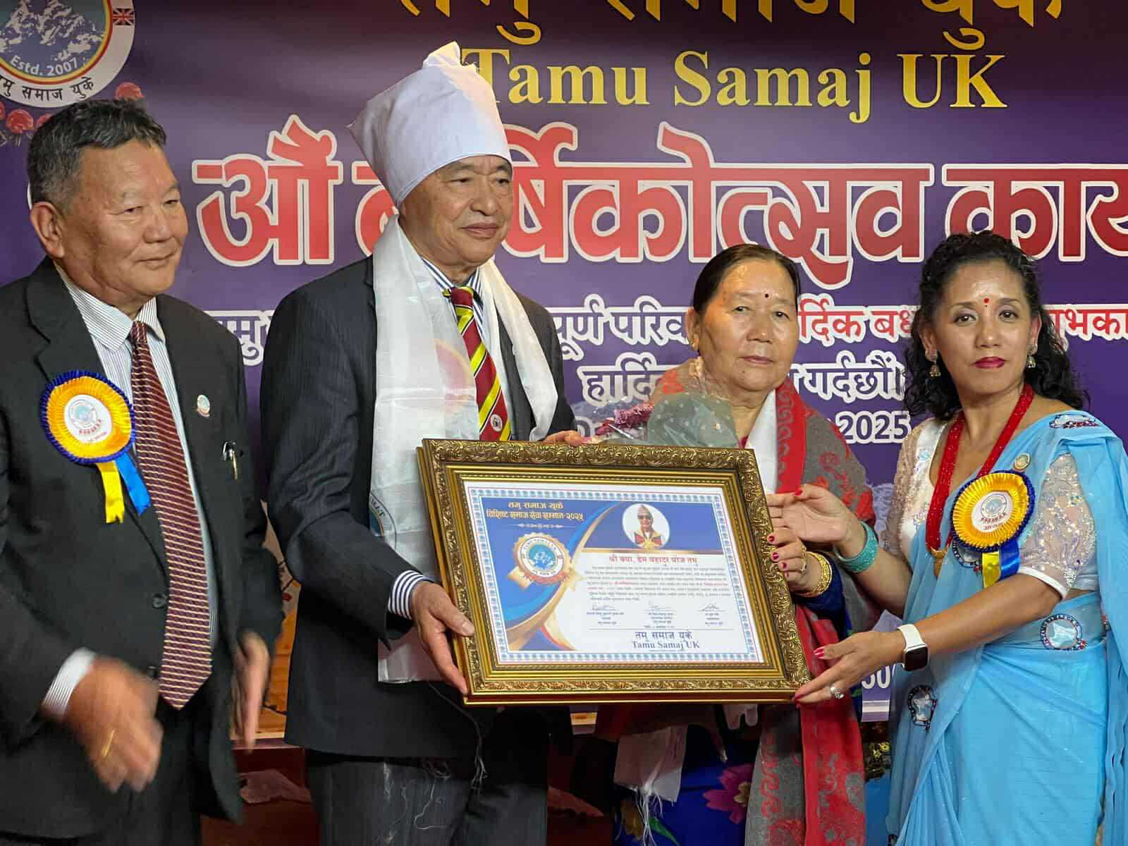 लन्डन । तमु प्ये ल्हु संघ यूकेका अध्यक्ष क्याप्टेन रि। डेमबहादुर गुरुङ सम्मानित भएका छन् । तमु समाज यूकेको १८औँ वार्षिकोत्सवको अवसरमा ४ अक्टुबरमा लन्डनको विम्बलीस्थित बारहम पार्कमा रहेको तमु समाज भवनमा आयोजित समारवहमा क्यारि गुरुङ ‘तमु समाज यूके विशिष्ट समाज सेवा सम्मान–२०२५’बाट सम्मानित भएका हुन् । उनलाई तमु समाज यूकेकी अध्यक्ष बिन्दुकुमारी गुरुङ (घले)…