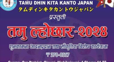 टोकियो । तमू धीं जापानले विभिन्न सांस्कृतिक कार्यक्रमसहित मुप्री ल्होको बिदाइ तथा सप्री ल्होको स्वागत गर्दै तमू ल्होसार/ल्होछार मनाएको छ। टोकियोस्थित इकेगामी हलमा भव्य कार्यक्रम आयोजना गरी ३०औँ तमू ल्होसार/ल्होछार मनाएको हो। जापानमा रहेका तमू समुदायको ठूलो उपस्थिति रहेको कार्यक्रमको सुरुवाती चरणमा लम गुरू सन्दीप तमूको हातबाट रिपा लगाउने, ग्रहदशा काट्ने काम भएको थियो। स्थानीय…